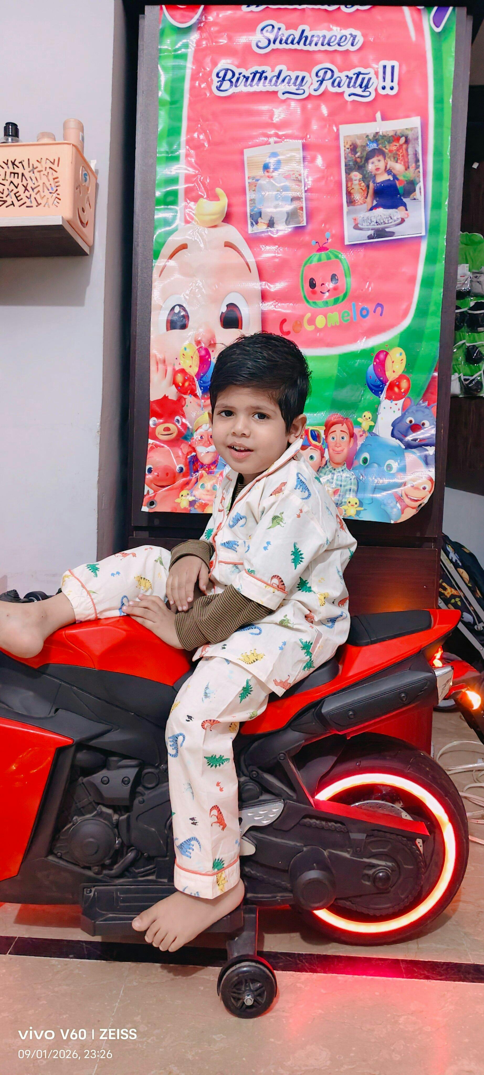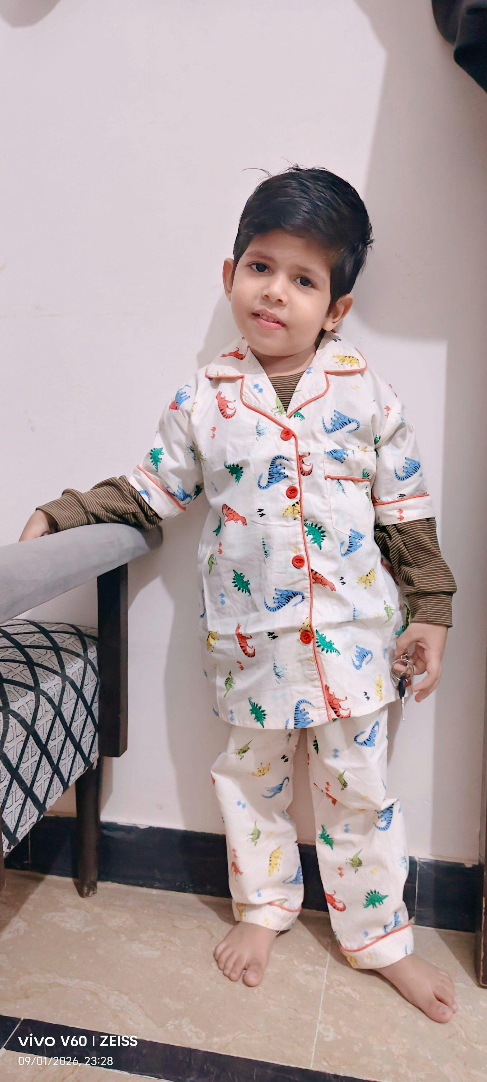 Printed Dino Nightsuit - Peach ( Without Scrunchie )
